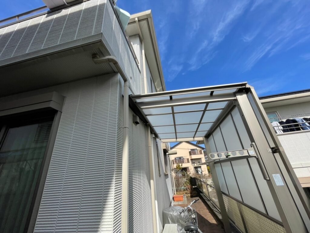 軒天部・雨樋など経年劣化に伴う色褪せが目立ちました。
