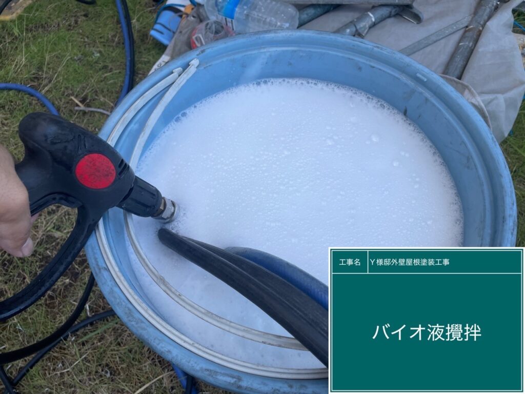 軒天部分に仕上げ材の光触媒プロテクトコーティング(クリスタルシーズンtg)を塗布します。